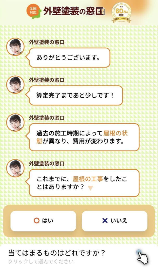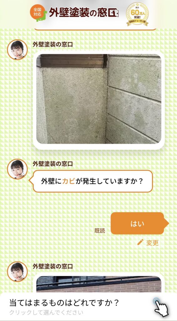 女将的にはイラストで選べたり、ひび割れやカビとかお家の状態を写真で「こんな感じ?」ってなってるところがやるねぇと思ったね!